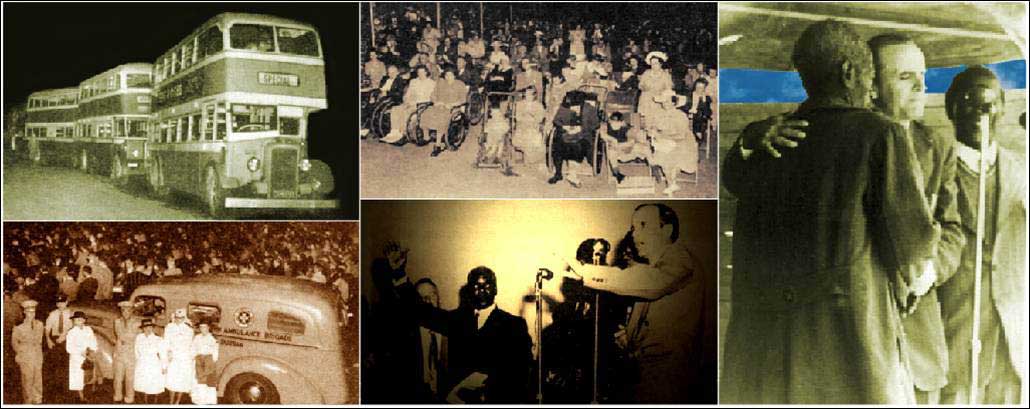 Although Durban had a large municipal and private bus fleet, there were not enough busses in the whole of the metropolis to accommodate the crowds. The following morning the Mayor of Durban, Mr. Sidney Smith, came to Brother Branham’s hotel and raised the window for him to see seven cattle trucks full of stretchers, crutches, wheelchairs and other aids discarded by people the Lord had healed. Those who had used them the day before followed, walking and singing in their native tongues, “All things are possible, only believe.” It just goes to show that Christ is the answer, and the One who gives the answer.