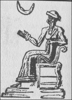 Ur of the Chaldees was so devoted to the moon-god that it was sometimes called Nannar in tablets from that time period. A temple of the moon-god was excavated in Ur by Sir Leonard Woolley. He dug up many examples of moon-worship that are now displayed in the British Museum. Harran was likewise noted for its devotion to the moon-god. An example of the Babylonian moon-god is shown to the right. Note the presence of the crescent.