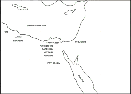 Map 3     The approximate areas of settlement of the descendants of Mizraim throughout Egypt and Libya.