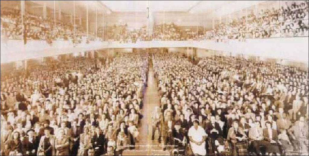 September 30, 1951 was the conclusion of a three-day revival at St. Nicholas Arena in New York City. Brother Branham preached on “Expectation.” Sister Branham was seated in the second row on the left, wearing a dark suit, her arms crossed; Rebekah sits next to her. Congressman Upshaw and his wife are seated midway in the same row.